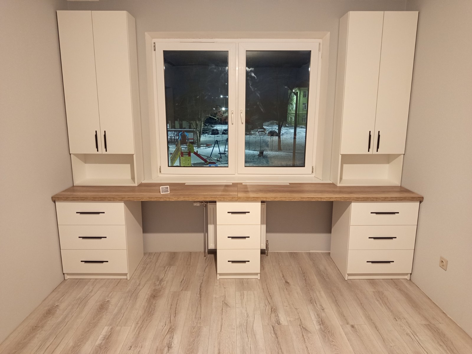 БОЛЬШОЙ И ВМЕСТЬТЕЛЬНЫЙ ТРЕХТУМБОВЫЙ СТОЛ В ПОДОКОННИК. ВКЛЮЧАЕТ В СЕБЯ ДВЕ ТУМБЫ ШИРИНОЙ 600мм С ШАРИКОВЫМИ НАПРОВЛЯЮЩИМИ L-450мм. И ОДНА В СЕРЕДИНЕ ШИРИНОЙ НА 400мм С ШАРИКОВЫМИ НАПРОВЛЯЮЩИМИL-350мм.В СТОЛЕШНИЦУ ВРЕЗАНЫ ВЕНТИЛЯЦИОННЫЕ РЕШОТКИ ДЛЯ ЦИРКУЛЯЦИИ ВОЗДУХА ОТ БАТАРЕИ. УСТАНОВЛЕНЫ РУЧКИ КОЛЛЕКЦИИ (СТЭЛС) В ЧЕРНОМ ЦВЕТЕ.